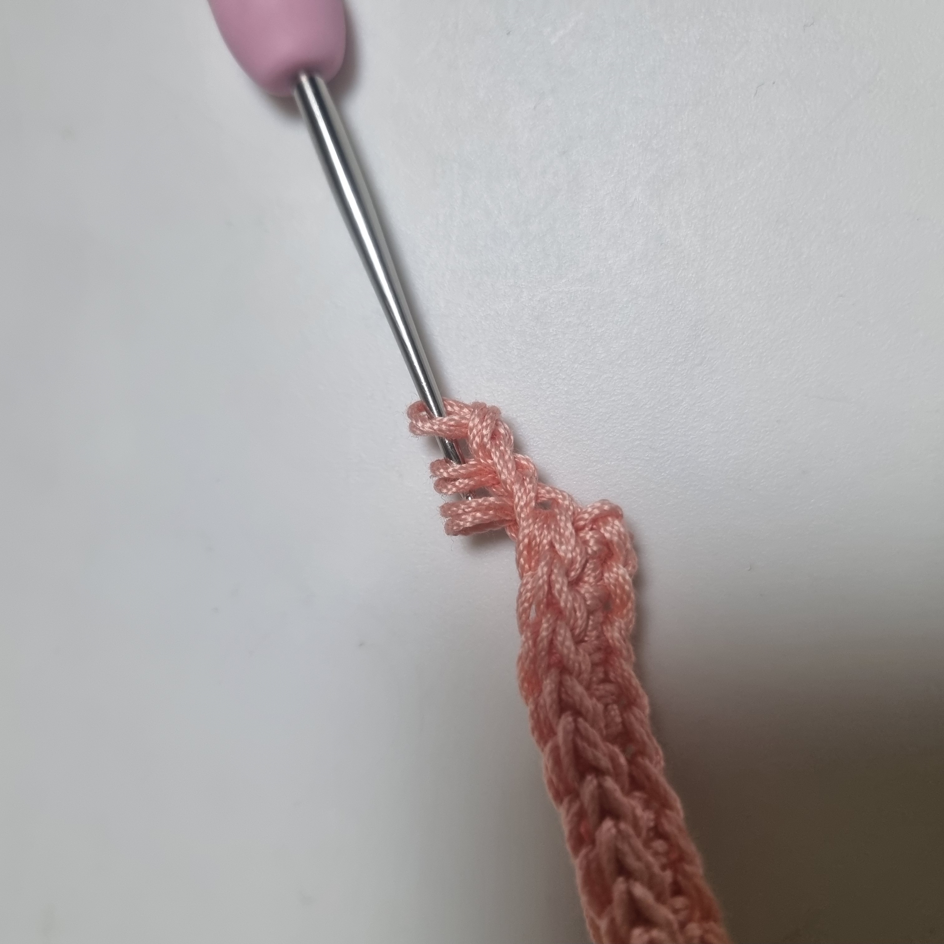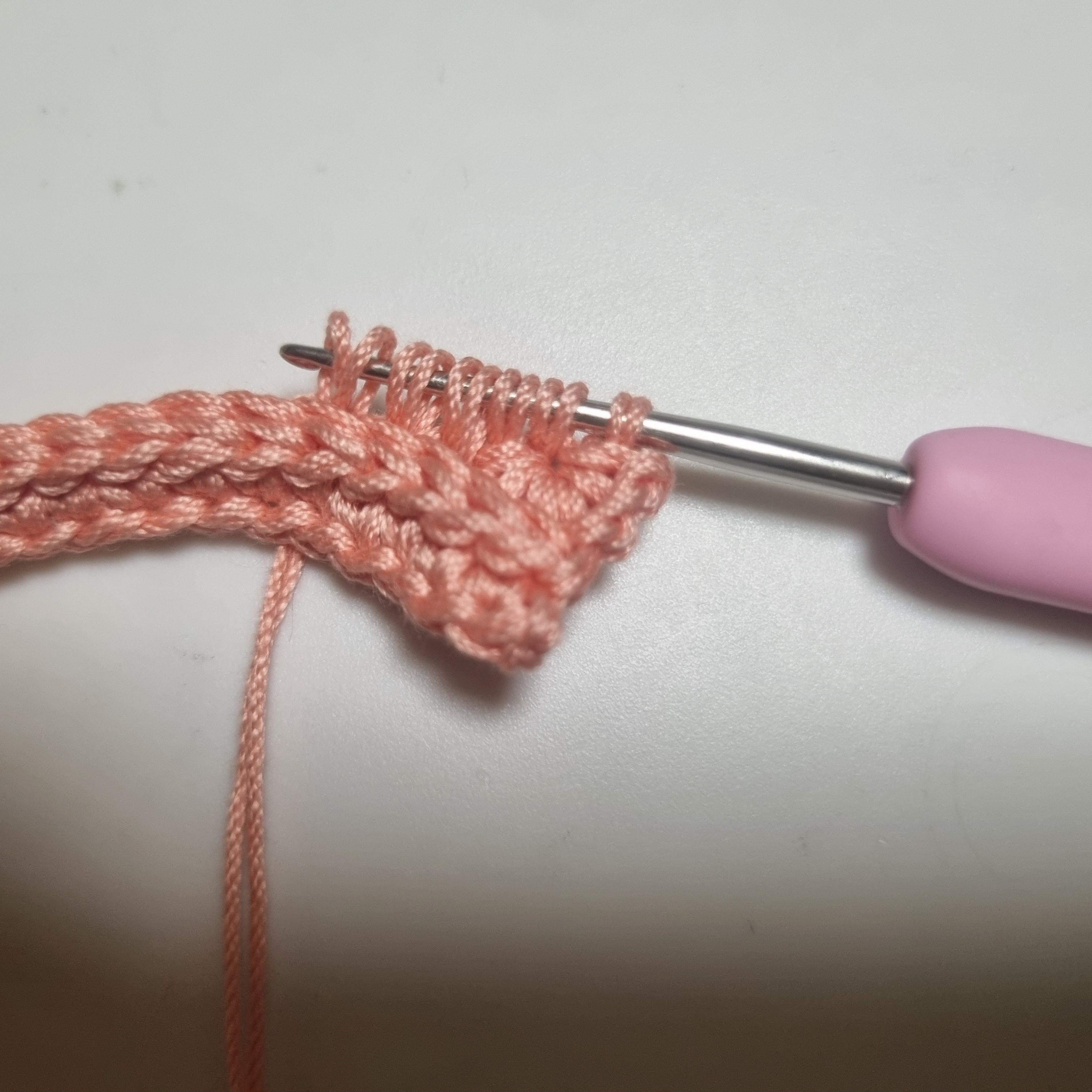 빼뜨기를 다해 끝까지 오면 기둥코 3코를 떠주세요