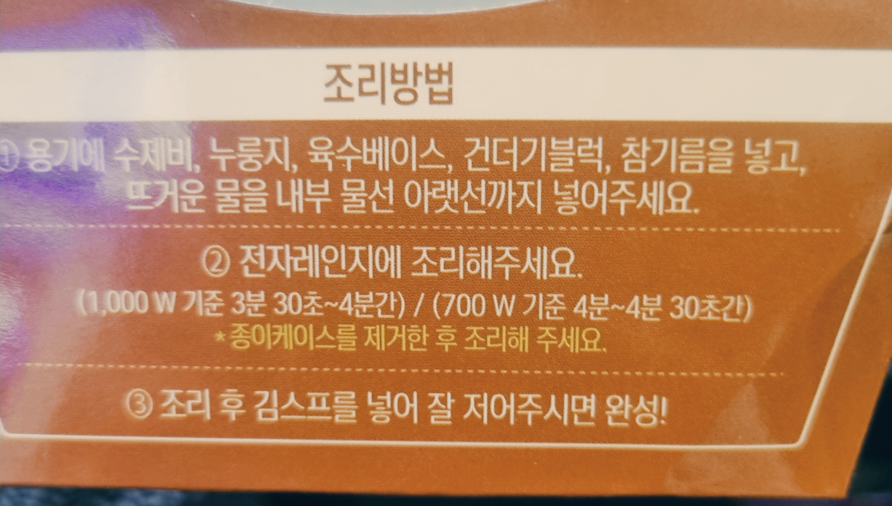 조리 방법은 단순합니다. 물을 붓고 전자레인지에 돌리는 방식.