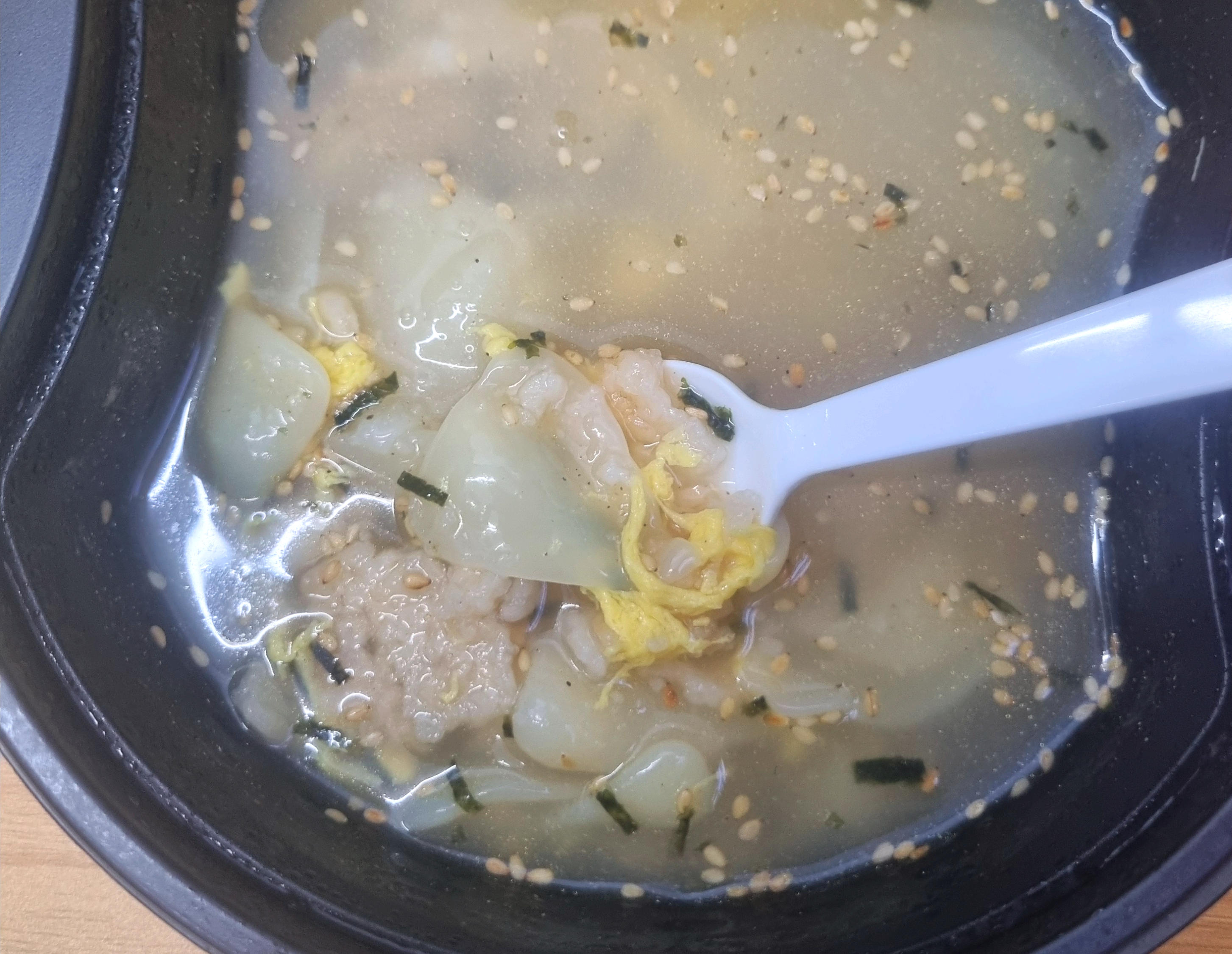 개인적으로는 맑은 수제비 맛을 만들기 위해 일부러 계란국 쪽으로 방향을 잡은 것 같다는 생각이 들었습니다. 누룽지를 전면에 내세우면 국물이 무거워질 수 있으니, 전체를 정리한 선택처럼 느껴졌습니다.