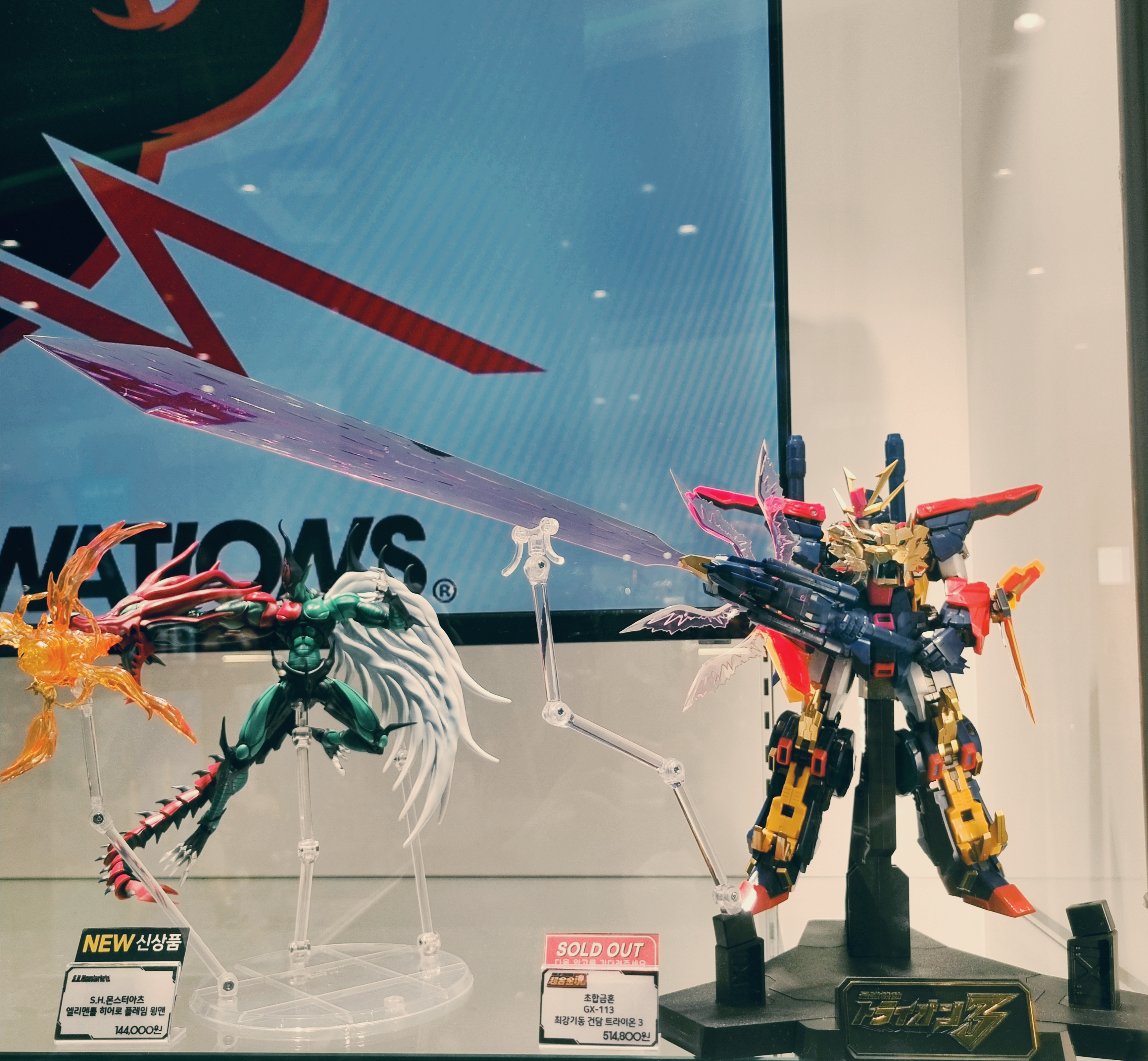 매장 안에 사람들이 건담 박스를 하나씩은 들고 있는 것을 보면 많이 팔려서 그런건지 매장안 상품이 꽉 차있지는 않았습니다. 매대에 상품이 없는 곳이 종종 있었습니다.