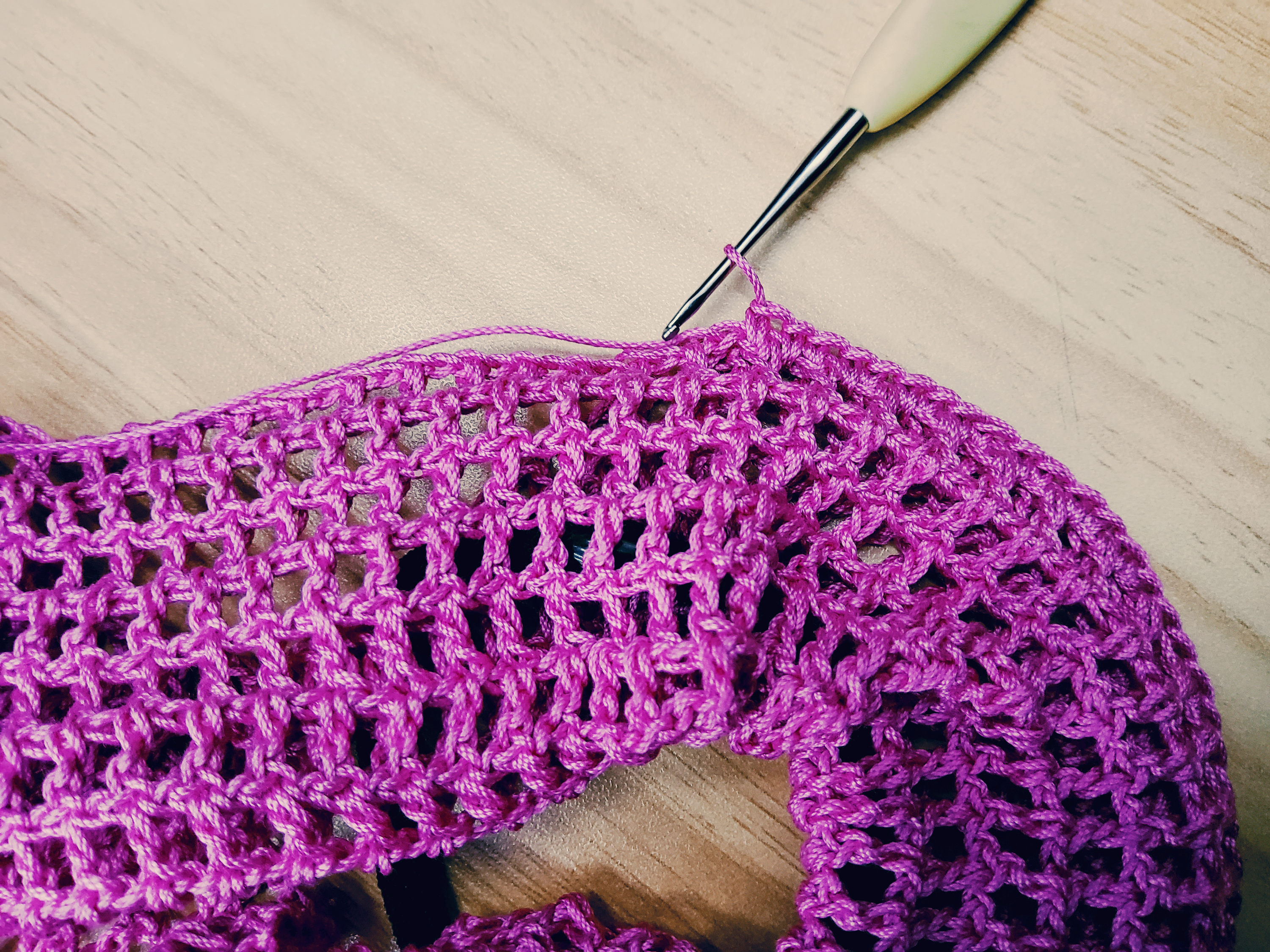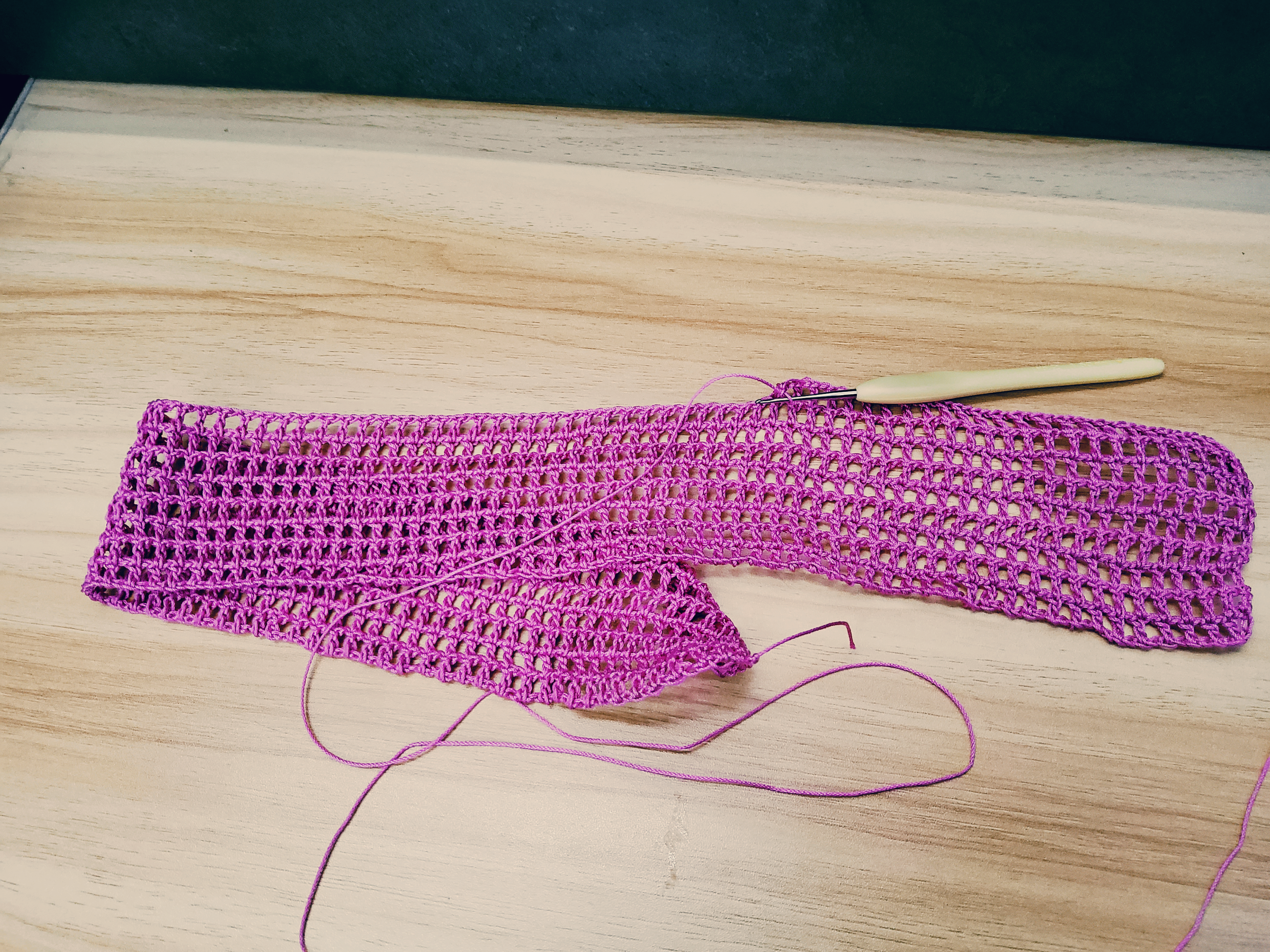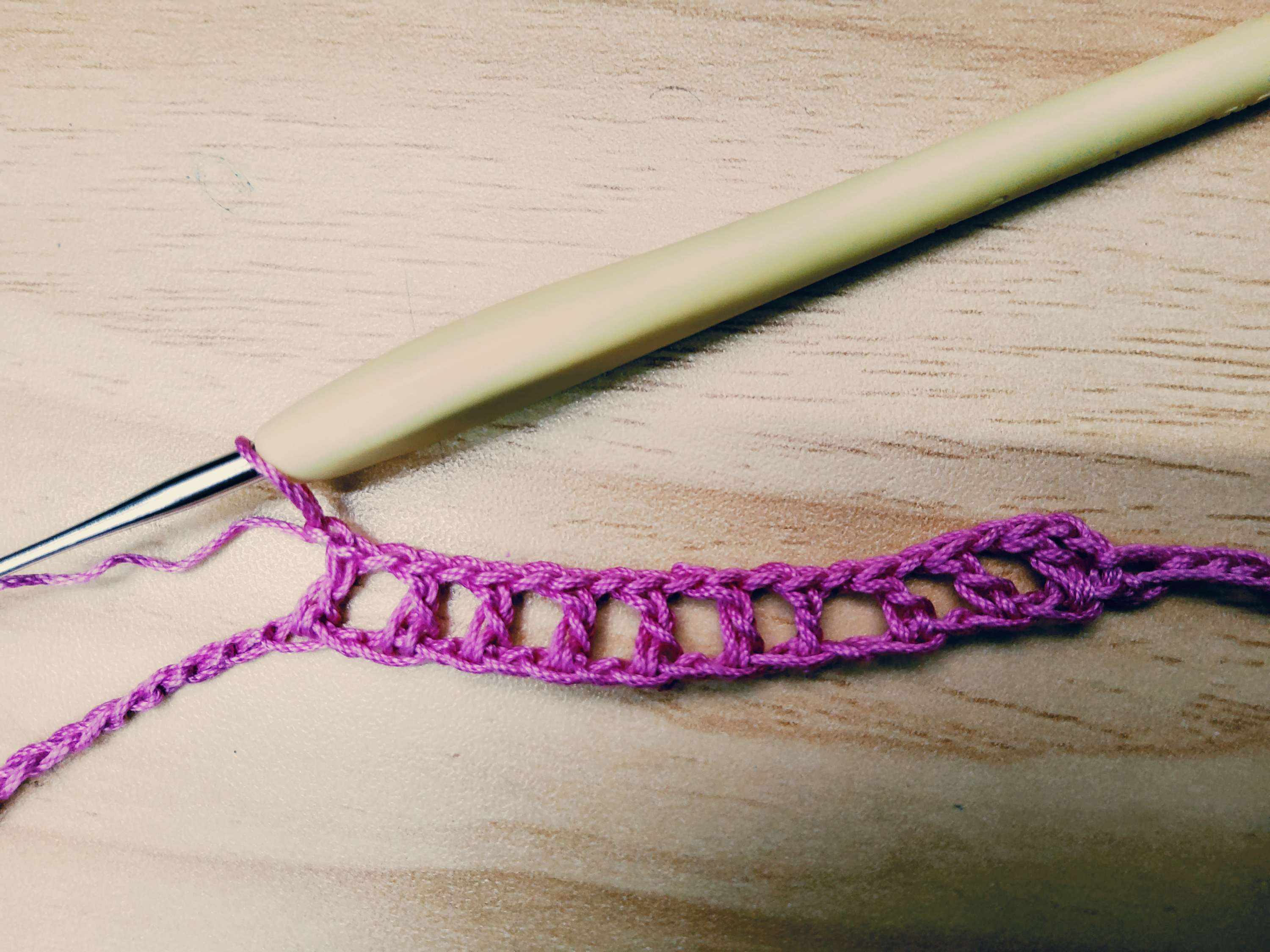 계속 반복적인 떠주시면 그물 모양의 띠가 나옵니다.
