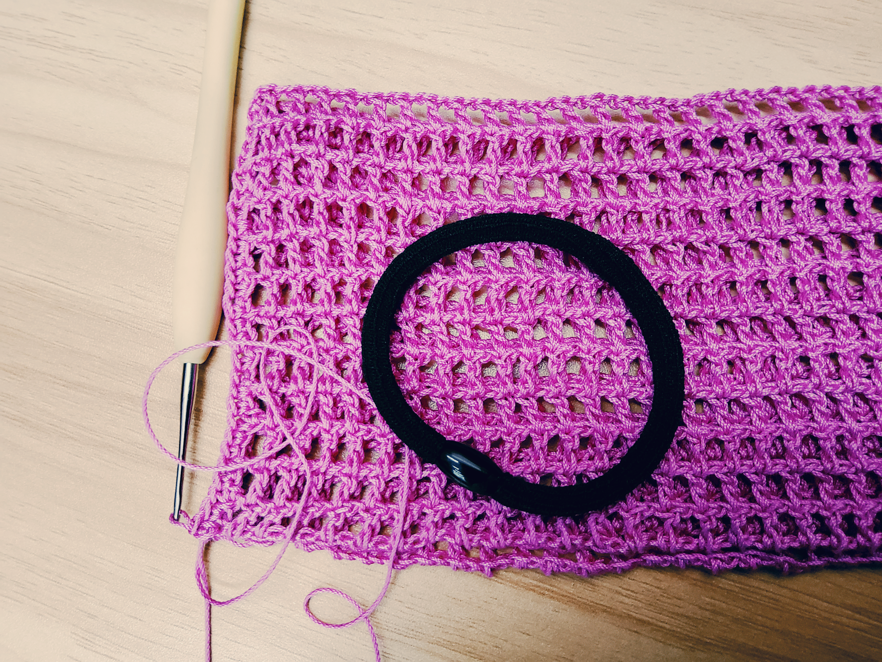 원하는 넓이로 뜨시면 양쪽 끝을 코바늘로 이용해 연결시켜 주시면 됩니다.