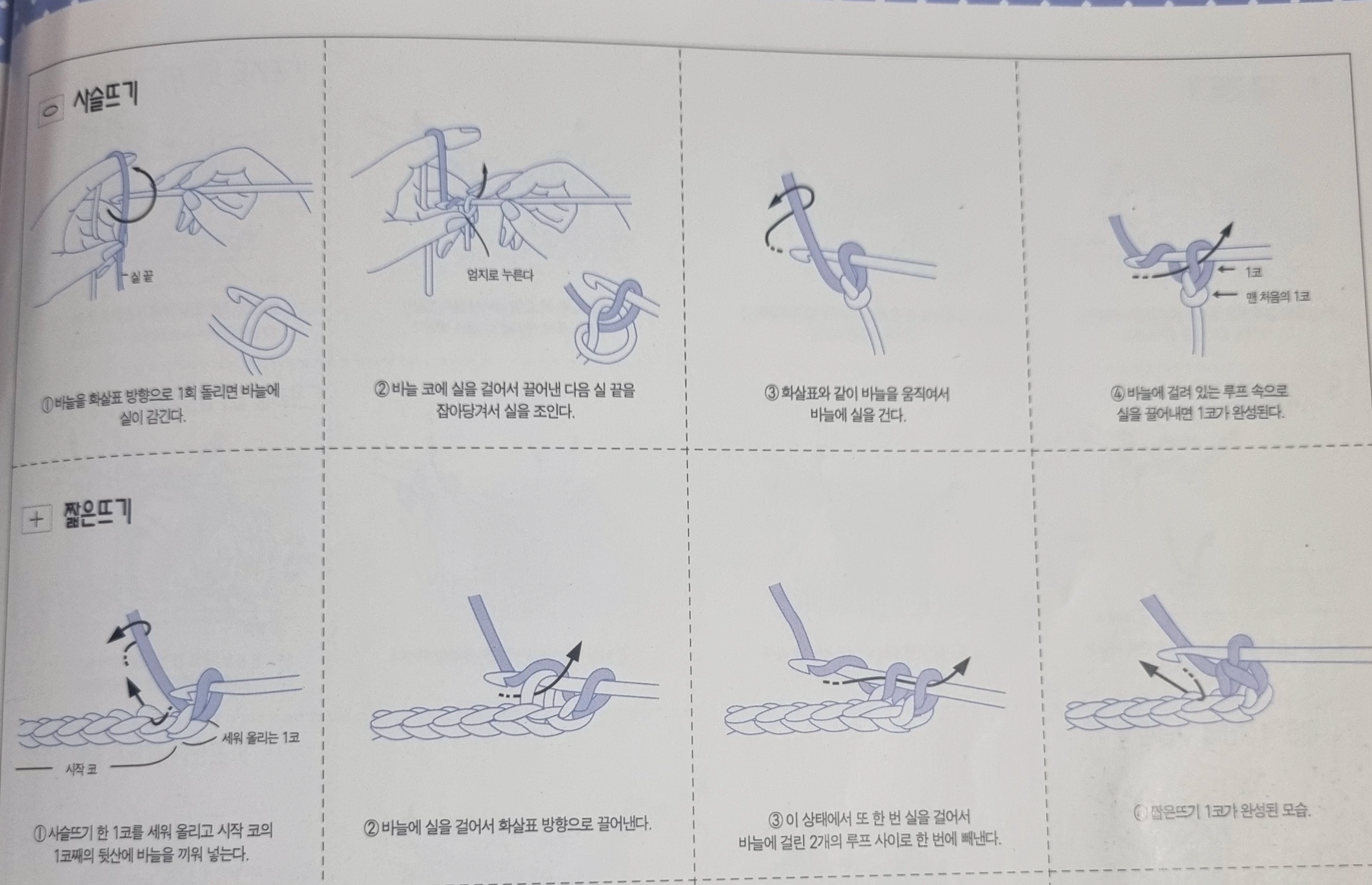 짧은 뜨기는 코바늘 뜨기에 가장 기초적인 것이며 코바늘 뜨기에서 가장 많이 쓰이는 기법입니다