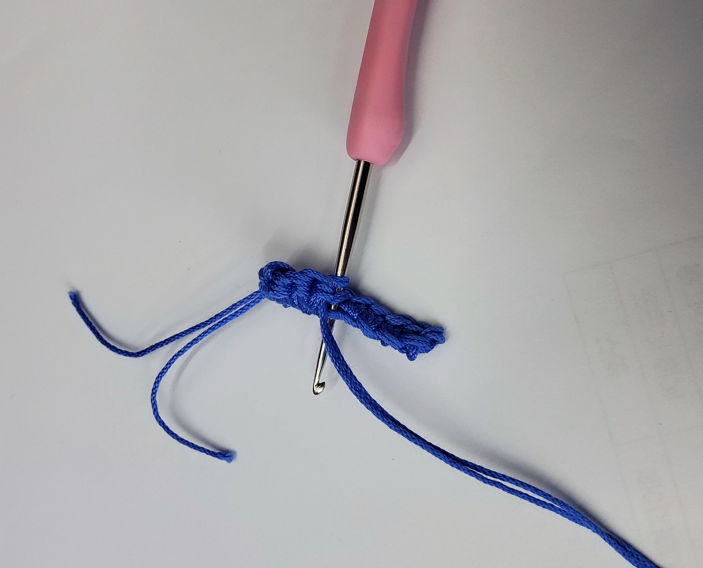 1. 원하는 너비만큼 사슬뜨기를 해주세요 저는 한 8코 정도 했는데 한 2.5cm 정도 됩니다.
