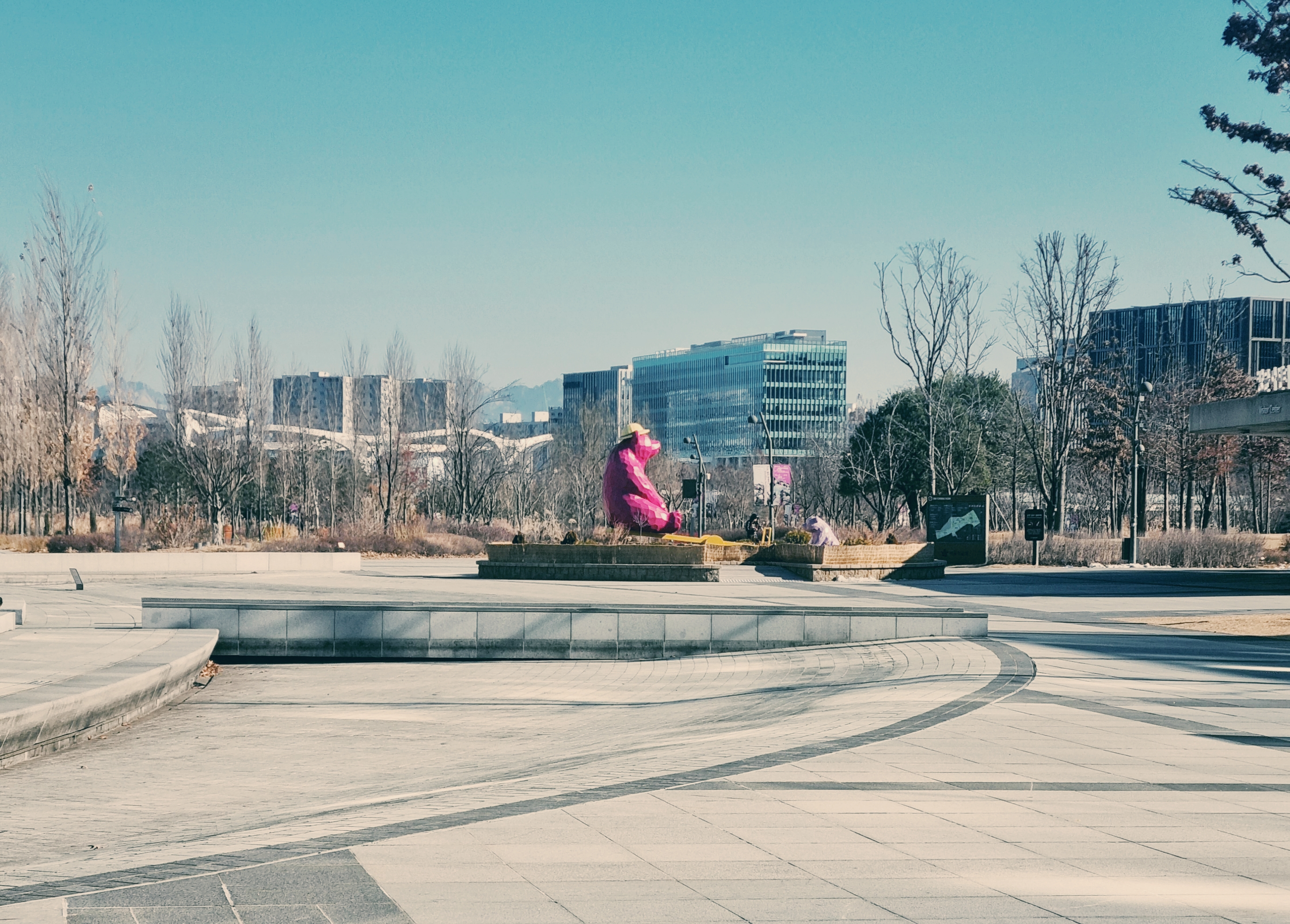 처음 가는 길이서 어느 방향으로 가야 할지 잠시 머물러 거렸는데 앞에 핑크모양의 큰 곰동상이 눈에 들어왔습니다.