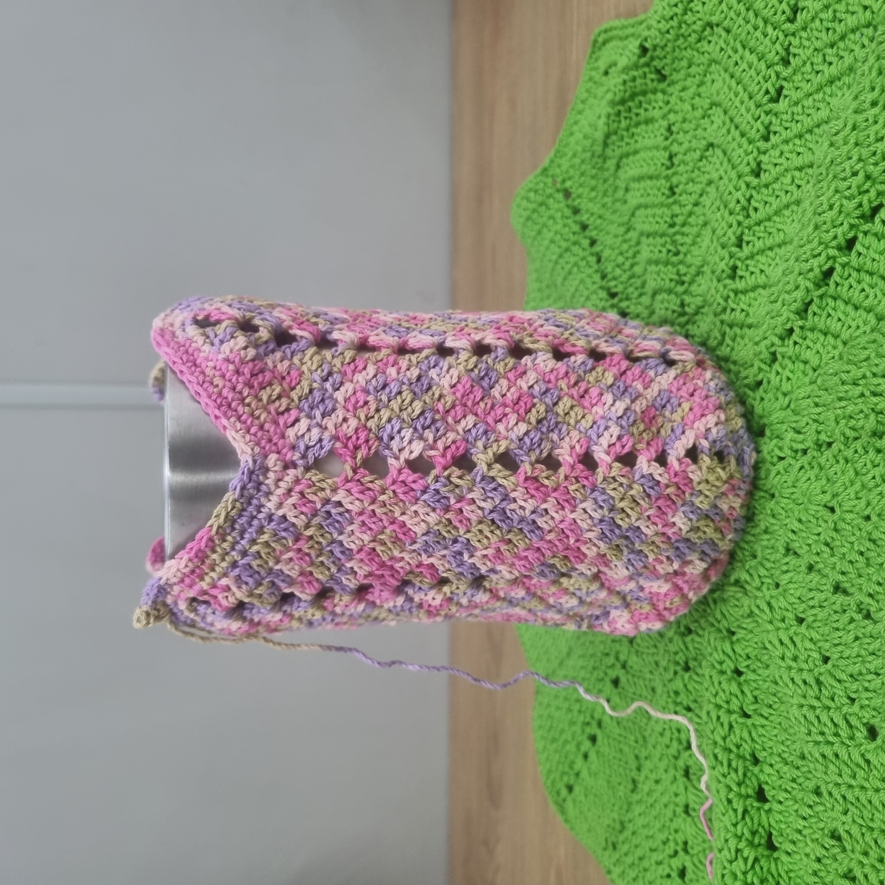 단마다 6코씩 늘려주며 원형의 형태를 만들고, 텀블러가 안정적으로 들어갈 수 있도록 지름 약 9cm까지 키워주었습니다.