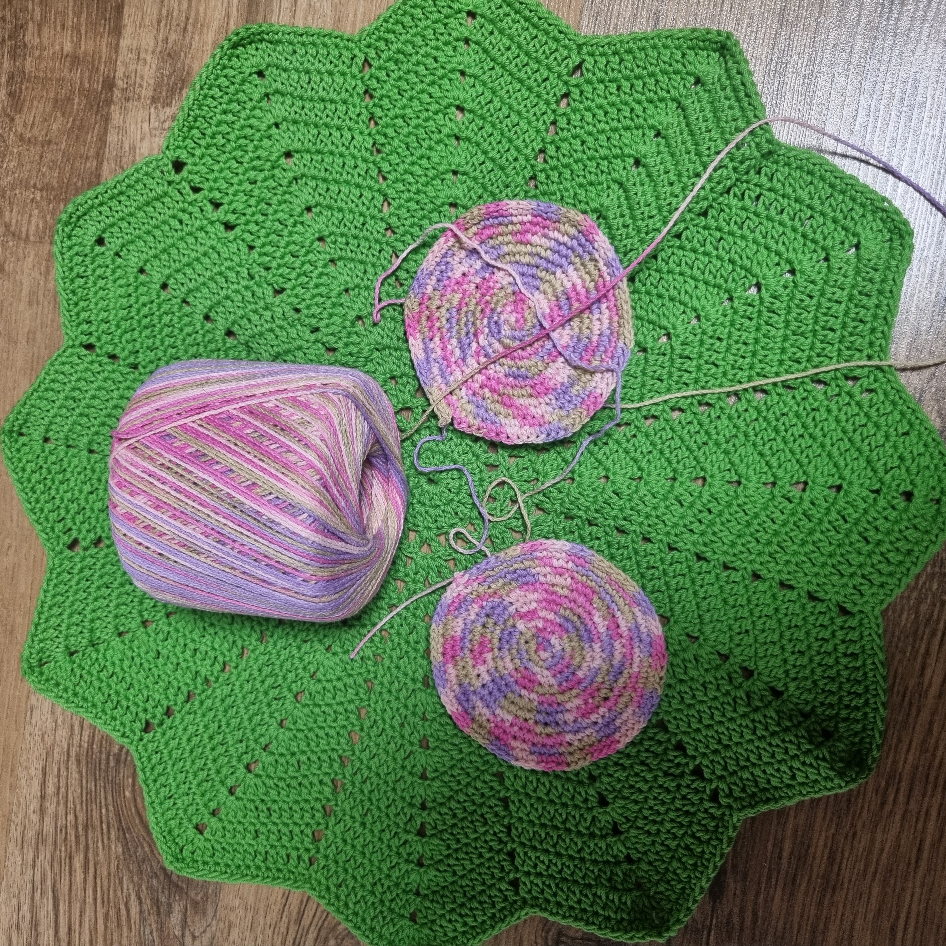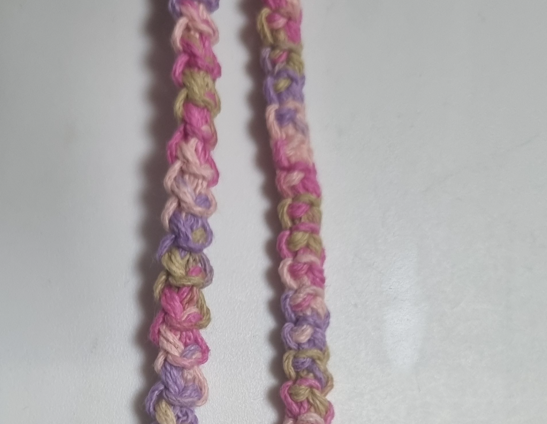 - 실: 면사 멀티컬러 (핑크·보라·올리브그린 계열), 단색 연핑크 면사 50g
